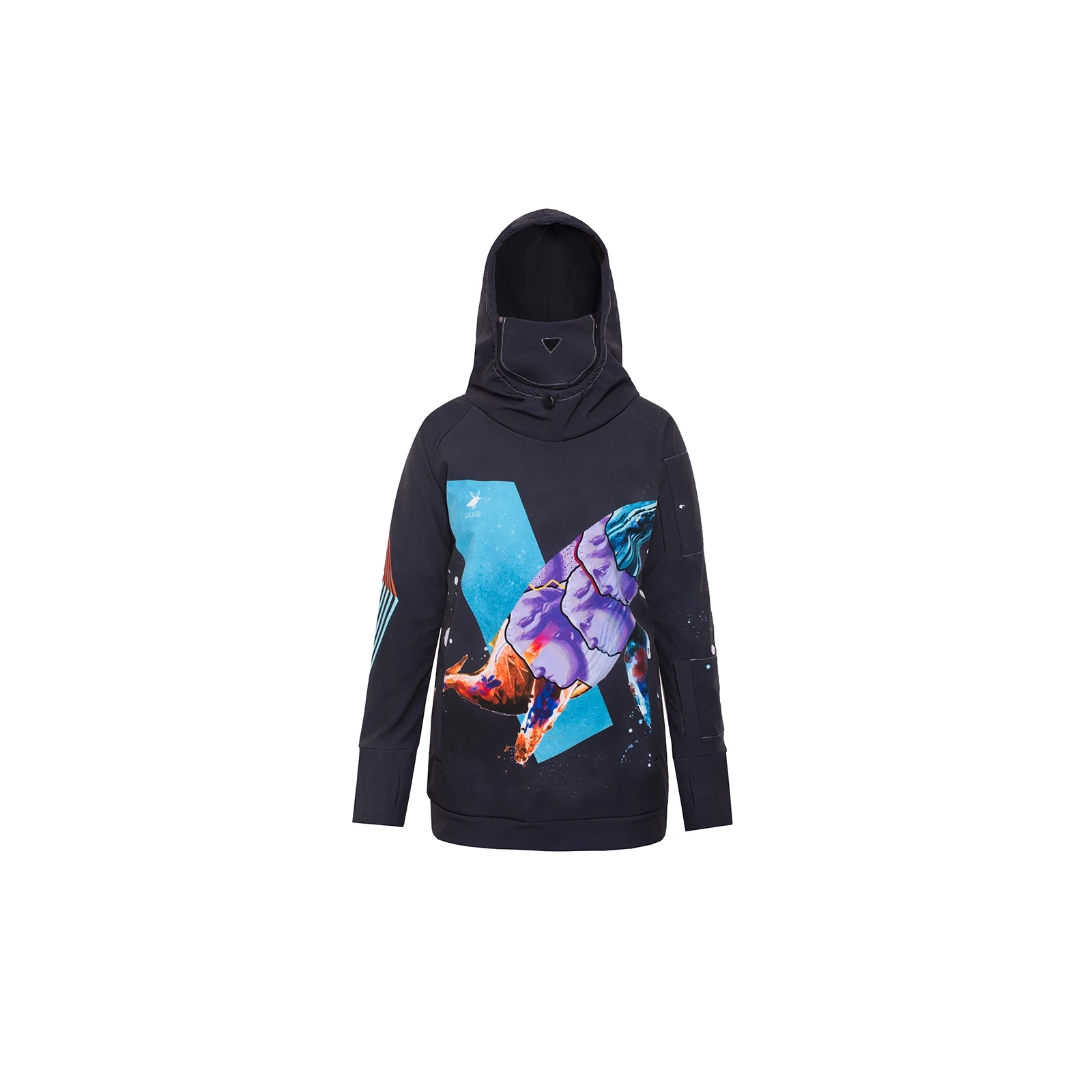 - Wbudowana maska chroniąca twarz przed zimnem i wiatrem